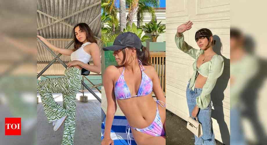 The knotted shirt in satin options bell-sleeves and Aaliyah kinds it with a pair of blue denims and beige colored purse. That is an apt search for a summer time brunch. Tie you hair in a bun to beat the warmth and look stylish.