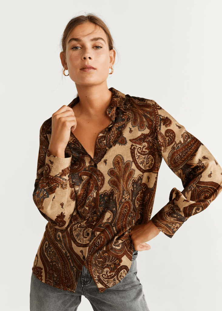 We love the paisley print en zoals je huge al hebt gemerkt houden we ook van beige en bruintinten. Deze chique shirt van Mango is ook nog eens betaalbaar.