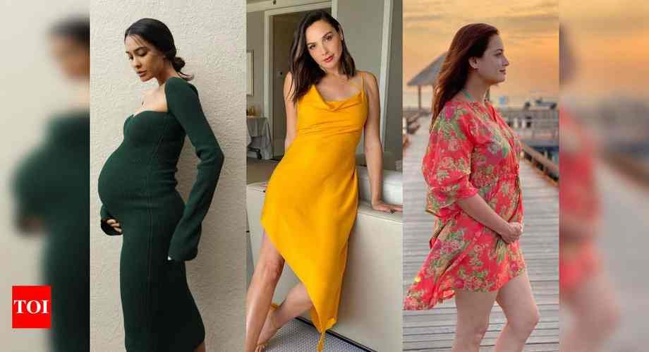 Actor Dia Mirza confirmed off her pins in a printed maxi gown and flaunting her child bump.